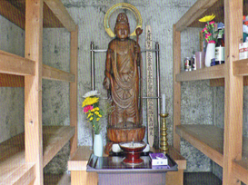 ●永代供養料:50万円 本堂内の位牌棚に当該戒名の位牌を安置し、永代施餓鬼帳、永代祠堂回帳に記載し、お施餓鬼会、春秋お彼岸、お盆に回向します。 ●供養料:30万円 本堂内の位牌棚に当該戒名の位牌を安置し、三十三回忌まで合葬墓過去帳に記載し、お施餓鬼会、春秋お彼岸、お盆に回向します。 | ![]() 本堂内の位牌棚